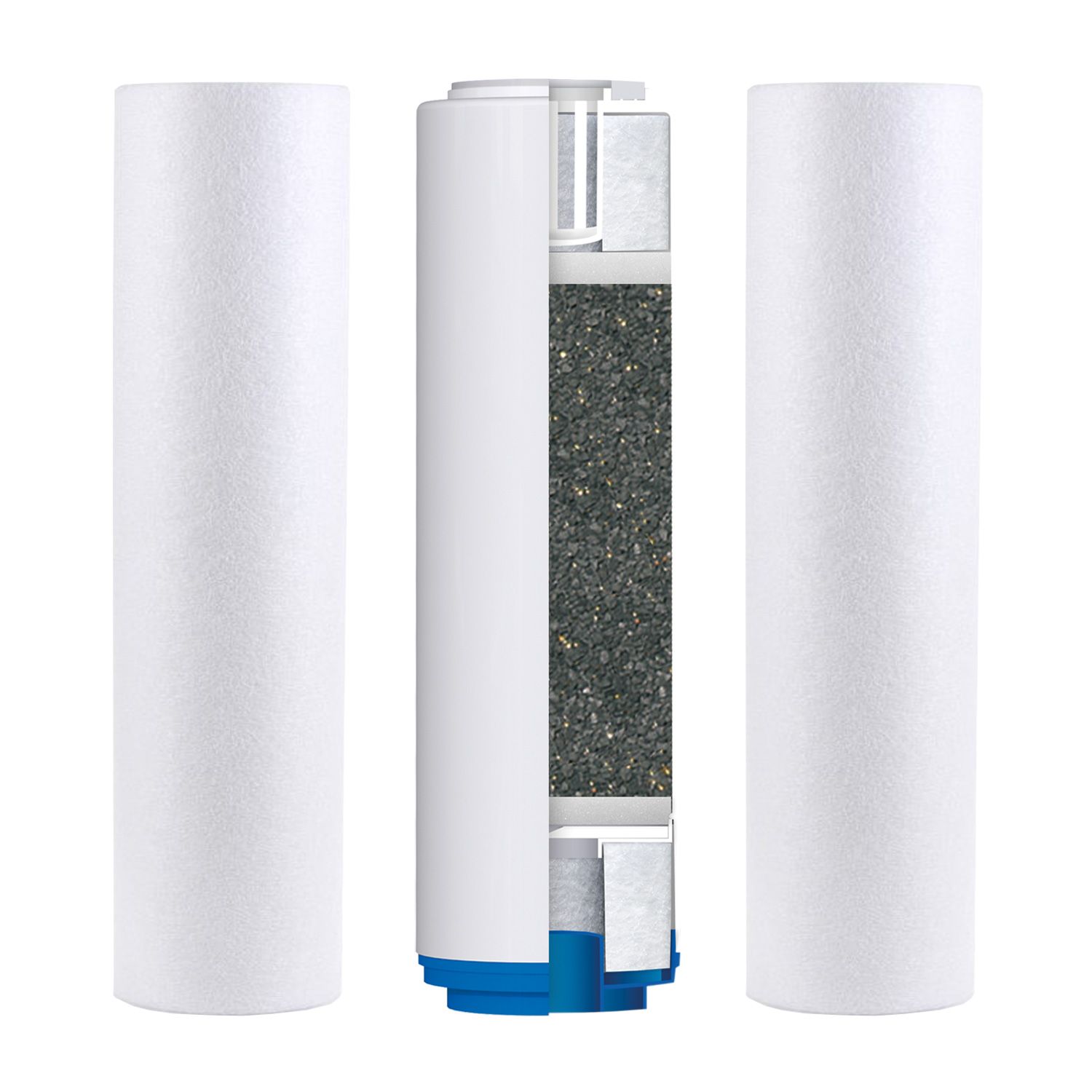 I ступінь – фільтруючою речовиною картриджа служить спінений поліпропілен із щільністю волокон 5 мкм (видаляє осад, зважені частинки та механічні забруднення);
