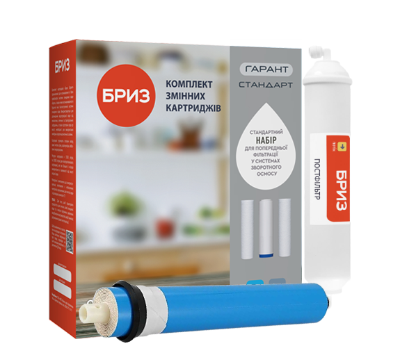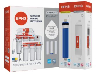 Комплект картриджів призначений для установки в системи очищення води "Бриз Гарант", а також будь-які інші зворотноосмотичні та багатоступінчасті системи очищення води. Використовується для попереднього очищення водопровідної води у зворотноосмотичних системах від механічних та хімічних забруднень, в обсязі, необхідному для приготування їжі та пиття. Картриджі високоефективно очищають воду від механічних домішок, хлору та його сполук, усувають каламутність, неприємний запах та смак, знижують вміст у воді органіки, пестицидів, важких металів, трихлорметану та інших шкідливих речовин. Комплект картриджів для системи очищення води «Бриз Гарант №4 Стандарт» складається з трьох картриджів, що забезпечують триступінчасте попереднє очищення води: